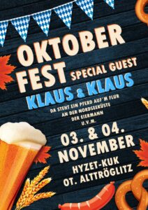 Das Duo Klaus & Klaus kommt zum Oktoberfest in den Burgenlandkreis im Open Air Bereich und Bier im Maßkrug. Für Sitzplatzhabende wird auch am Tisch bedient.