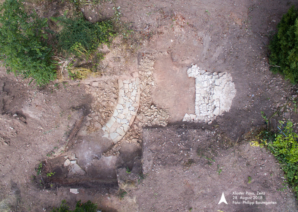 Die Gründung des Klosters Posa im Jahre 1114 fällt in diesen Zeitraum. Bekanntlich ist von der ehemaligen Klausur des Klosters nicht mehr geblieben, als eine meterhohe Schuttanhäufung, die das südöstliche Gelände leicht erhöht. Denn nachdem das Kloster im Zuge der Reformation aufgelöst wurde und zunehmend verfiel, trug man die Gebäude Stein um Stein ab und verwertete das gewonnene Baumaterial beim Neubau des heutigen Residenzschlosses Moritzburg. Den Spuren des romanischen Klausurbaus folgend, begann im Frühjahr 2017 die archäologische Untersuchung der Fundamentreste der einstigen Klosterkirche. Nach knapp zweijähriger ehrenamtlicher Ausgrabung, sind drei Bauphasen nachgewiesen, die zum Tag des offenen Denkmals am kommenden Sonntag besichtigt werden können. Nicht nur die Reste der romanischen Hauptapsis sind deutlich erkennbar geworden, auch der Umbau des Chors in der Gotik ist in seinen Fundamenten erhalten geblieben. Bei Weitem sensationeller ist der Fund eines vorklösterlichen Baus, der bisher nicht eindeutig bestimmt ist, dennoch lässt die Sachlage darauf schließen, dass seine Bauzeit in das 10. Jahrhundert zurückreicht und damit zur Lebzeit von Boso entstanden sein könnte.