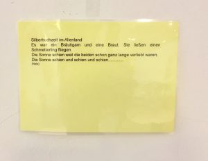 Magnet der Stadtgalerie ist die Ausstellung des Kreativitätszentrums in der Kramerstraße 1. Mein Lieblingsbild: Silberhochzeit im Alienland. Gemacht hat es Nele, 8 Jahre. Die Kids vom Kreazentrum haben dazu allerlei Weggeworfenes gesammelt und daraus ihre Skulpturen und Bilder erschaffen. Upcycling könnte man das nennen und es macht Freude zu sehen, wie neue Werte geschaffen werden indem man Unrat anders kontextualisiert.