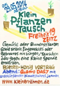Jeder ist eingeladen, Gemüse- oder Blumenpflanzen sowie selbst Eingewecktes oder Gebrautes mitzubringen oder mit Anderen zu tauschen.