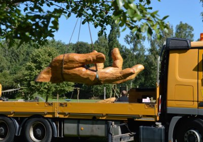 Fertigstellung eines Kunstobjektes vom Holzkünstler Christian Schmidt