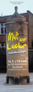 „Die 3. Pecha Kucha Nacht in Zeitz steht unter dem Thema „Mut zur Lücke“. Das Motto diente auf der einen Seite lange als Grundlage einer Stadtplanung, die auf Gebäude- Abriss und der damit verbundenen Schaffung von Grün- und Stellflächen setzte.