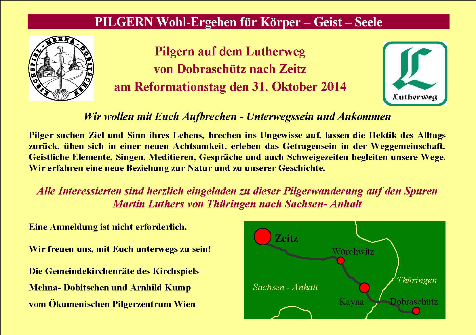 Pilgern auf dem Lutherweg von Dobraschütz nach Zeitz am Reformationstag den 31. Oktober 2014