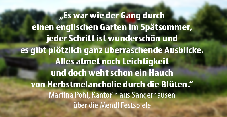 Bevor wir unseren Leserinnen und Lesern TerminTipps zu den Mendl Festspielen am Wochenende und im September geben…was sagen denn nun die Macher und Unterstützer nach der Premiere?