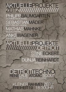 Kleiner Rahmen Zeitz e.V. zu einem Abend mit Fotovortrag, Diskussionsrunde und Detroiter Techno ein. Wir pendeln zwischen den Beispielen von Detroit und Zeitz, um aktuelle Projekte aufzuzeigen und Möglichkeiten für alte Räume in der Zukunft zu diskutieren.