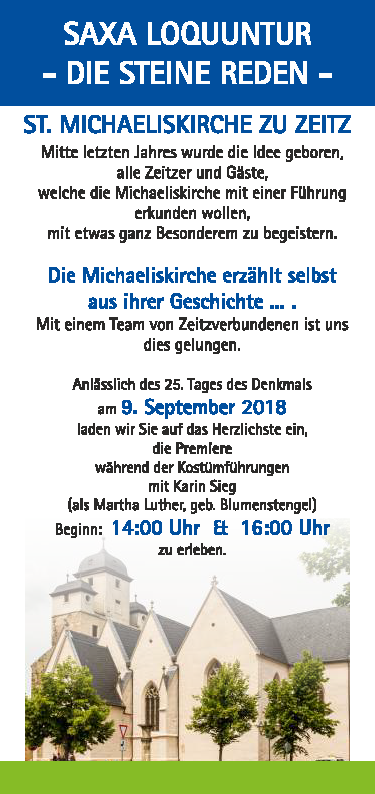 „SAXA LOQUUNTUR – Die Steine reden“, dachte sich Ines Enzmann und hatte die Idee. Nun hat die „sprechende Kirche“ Premiere, die Michaeliskirche erzählt ihre Geschichte: