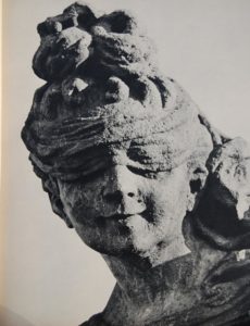 Besonders ausdrucksvoll der Kopf: Die Augen sind verbunden, welch huldvolle Grazie.