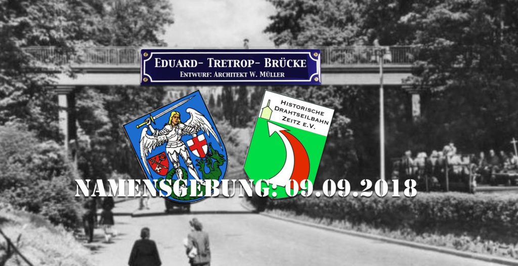 Eduard Tretrop, Baumeister der Thüringischen Eisenbahngesellschaft und als solcher am Knotenpunkt Zeitz maßgeblich sowie verantwortlich am Bau der Strecken nach Gera (1859), Altenburg (1872) und Leipzig (1873) beteiligt, schließt am 31. Januar 1877 einen Vertrag mit der Stadt Zeitz zum Bau einer Drahtseil- Eisenbahn.