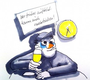 Ungewiss indess ist, ob das der Grund für den Bierdurst der Sachsen-Anhalteriner ist. Im Land der Frühaufsteher nämlich werden jährlich 13 Liter des leckeren Saftes mit den 1000 Inhaltsstoffen mehr getrunken, als der durchschnittliche Bundesdeutsche regelmäßig zu sich nimmt. Allerhand Spielraum für Hintergründiges und Satirisches rund um den lecker-erfrischenden Saft also.