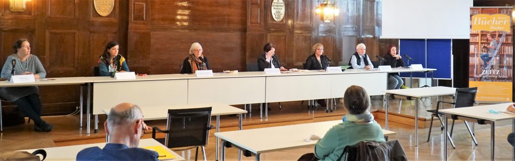 Kristin Otto (Museumsbibliothek), Carolin Drescher (Pfarrbibliothek Michaeliskirche), Roland Rittig (Ernst-Ortlepp-Bibliothek), Ulrike Trummer (Lebek-Zentrum)