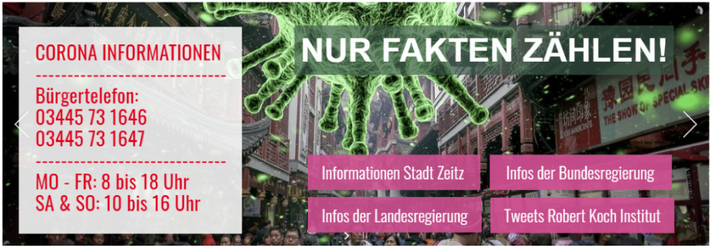 Links zu Corona-Informationen finden Sie auf ZeitzOnline.de im Startslider oben: