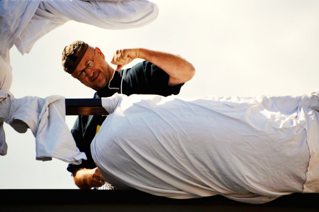 Roland Lindner und Clown LuLu nahmen in Gegenwart von etwa Einhundert Zeitzerinnen und Zeitzern den Steinen die Last des Verhülltseins. Auf dem Betonbogen, der die einstige Baulücke seit einiger Zeit überspannt gibt es nun einen weiteren Hingucker für die Zeitzer und Gäste der Stadt.