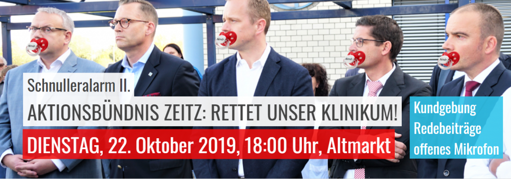 Oberarzt und Stadtrat Dr. Jörn Röhler verlas aus einem Brief an die Sozialministerin: „…Es ist nicht vergessen, das Zeitz mit einem Überschuss von 3 Mio Euro das Naumburger Klinikum mit einem Minus von 1,9 Mio Euro vor der Pleite gerettet hat – die den Kreisräten versprochenen Synergieeffekte sind nicht aufgetreten – die Verwaltung ist kräftig gewachsen, Doppelstrukturen wurden sogar noch ausgebaut und notwendige Investitionen wurden wiederholt über die Jahre verschoben. Der Lohnverzicht der Pflegekräfte über mehr als 8 Jahre hat eine noch frühere Insolvenz verhindert. Leider haben Aufsichtsrat, Gesellschafterversammlung und das Beteiligungsmanagement des Burgenlandkreises die bereits 2014 sichtbaren dunklen Wolken nicht wahrgenommen.“