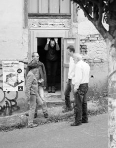 Später werde ich Petra Mattheis im Treppenhaus durchs Fenster in den Garten sehend, schwärmen hören. Wir blicken auf die terrassenförmige Struktur des Gartens hinter dem Haus und sie lässt den Freigeist sprühen. Dort sieht sie schon die schattigen Plätze unter ausladenden Bäumen, hier einen Kräutergarten zur Nutzung durch die Hausgemeinschaft. Es macht Spaß, ihr zu zuhören und zu ahnen, was die beiden Leipziger meinen mit ihrem Projekt „Freiraum sucht Freigeister“ (wir berichteten).