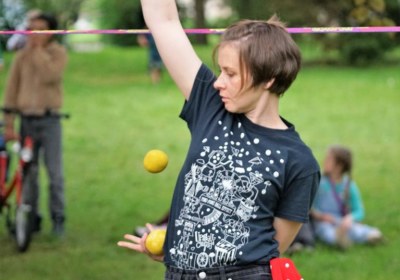Eine junge Frau schwebt über den Köpfen hoch im Baum begleitet von Querflötentönen, ein schlacksiger Jüngling schlägt unter Trommelwirbel Salti auf einem Seil, Bälle wirbeln durch die Luft – der Zirkus Upsala ist wieder da. Das Gegegnungsprojekt wirbt heute mit gelungenem Auftakt für seine Angebote in den nächsten Wochen. Und viele sind in den Gothepark gekommen, aus Zeitz und aller Herren Länder, Mütter und Väter mit ihren Kindern, Omas und Opas mit ihren Enkeln. Alle spenden sie reichlich Beifall für die jungen ArtistInnen.