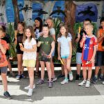 Dafür ließ Dr. Jörn Röhler sogar seine Praxis mal alleine: „Schön zu sehen, wenn Kinder auf diese Weise einen Bezug zur Heimatgeschichte bekommen„. Kinder haben eine Bushaltestelle in der Zeitzer Badstubenvorstadt gestaltet (Zeitzonline berichtete). Dabei hat Röhler selbst mitgeholfen und die Kosten für Grundierung und Farben übernommen. Stolz und strahlend haben die kleinen Künstlerinnen und Künstler ihr Werk heute (13.7.) der Öffentlichkeit übergeben. Gestrahlt haben sie auch, als Andreas Exler die große Kühlbox öffnete und jedem ein Eis spendierte.
