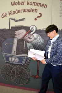 Stellvertretend für Museumsleiterin Kristin Otto erläuterte Mitarbeiterin Ursula Rittig die Entwürfe für die neu zu gestaltenden Ausstellungsräume. Dank der Förderung durch das Land Sachsen-Anhalt und den Burgenlandkreis, könne nun der zweite Teil der Dauerausstellung mit Kinderwagen „von 1946 bis heute“ neu gestaltet werden.