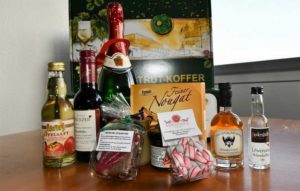 Seit Weihnachten gibt es die neue Auflage des Koffers mit bester Werbung für die Region. Für 30 Euro gibt es Wein vom Weingut Herzer, Sekt der Rotkäppchen Mumm-Sektkellereien GmbH in Freyburg, Saft von Jaro Fruchtverwertung GmbH aus Janisroda, Honig vom Imker Hellriegel, Süßigkeiten der Argenta Schokoladenmanufaktur aus Weißenfels, Marmelade vom „Froschkönig“ – Die Marmeladenmacher aus Profen, Bonbons vom Bonbonmann aus Zeitz, Liederstädter Likör vom Liederstädter – Das Original aus Liederstädt, Whisky der Zeitzer Whiskymanufaktur, Printen von der Bäckerei & Konditorei Block aus Klosterhäseler und Chutney vom Hof Göbitz.