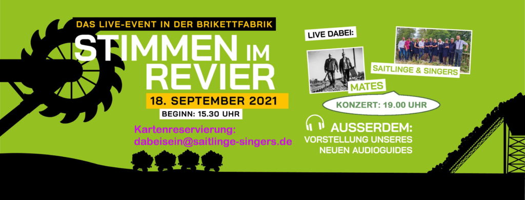Am Samstag Nachmittag und am Abend ist die älteste noch erhaltene Brikettfabrik der Welt voller Stimmen aus dem Revier.  Erst wird das Museum der Industriekultur seinen brandneuen Audio-Guide präsentieren, dann geht in zwei Konzerten die Revierpost ab.