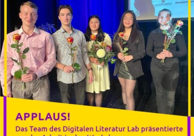 Die Jugendlichen haben übrigens zur Eröffnung aus ihrer Arbeit im LiteraturLab berichtet, bei dem sie vom Digitalisierungszentrum, Transmedial und ZeitzOnline unterstützt werden.