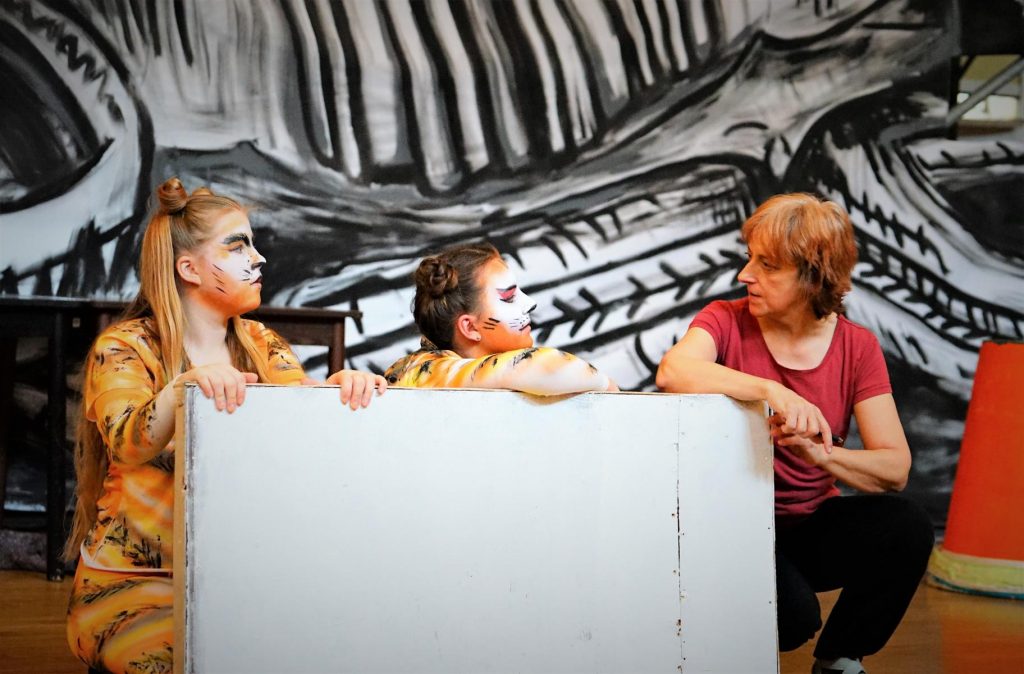 Was zuerst auffällt ist der riesige Schrottplatz, der sich vom Boden bis unter die Decke stapelt. Das riesige Bühnenbild entstand in Marianne Mächtigs Malstube und ist, auf ein Gerüst gespannt, heute im Haus der Jugend Tummelplatz einer riesigen Schar zauberhaufter CATS. Katzenkinder, wilde Kater, zarte Katzendamen – heute folgen sie alle brav den Regieanweisungen ihrer „CATS-Mutter“ Rotraud Denecke. Es ist die erste große Durchlaufprobe mit Kostümen und dem gesamten Orchester.