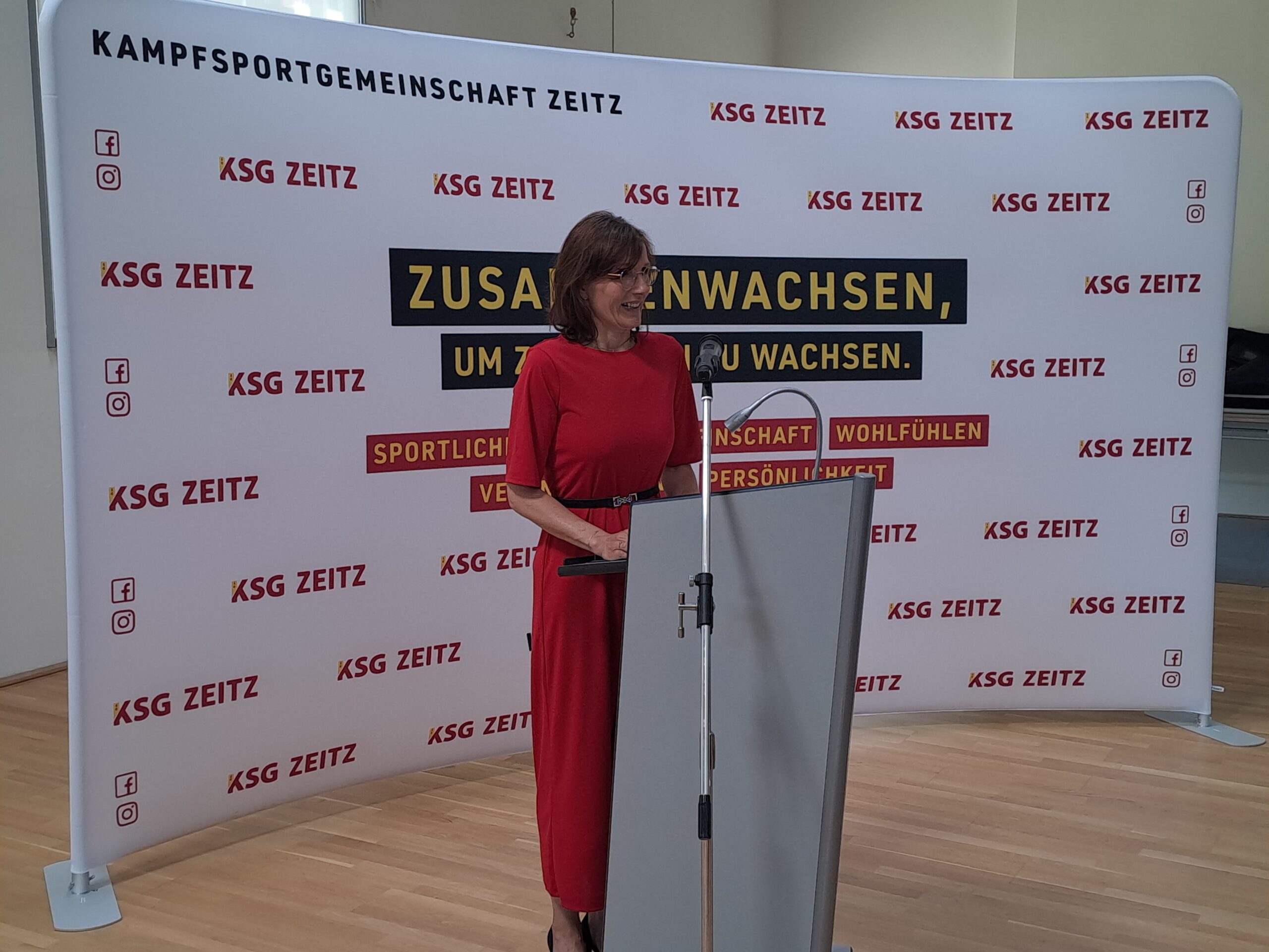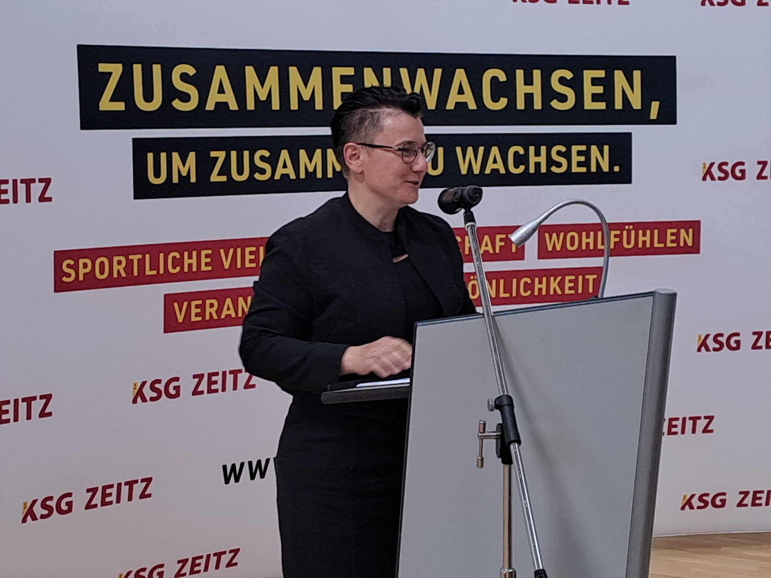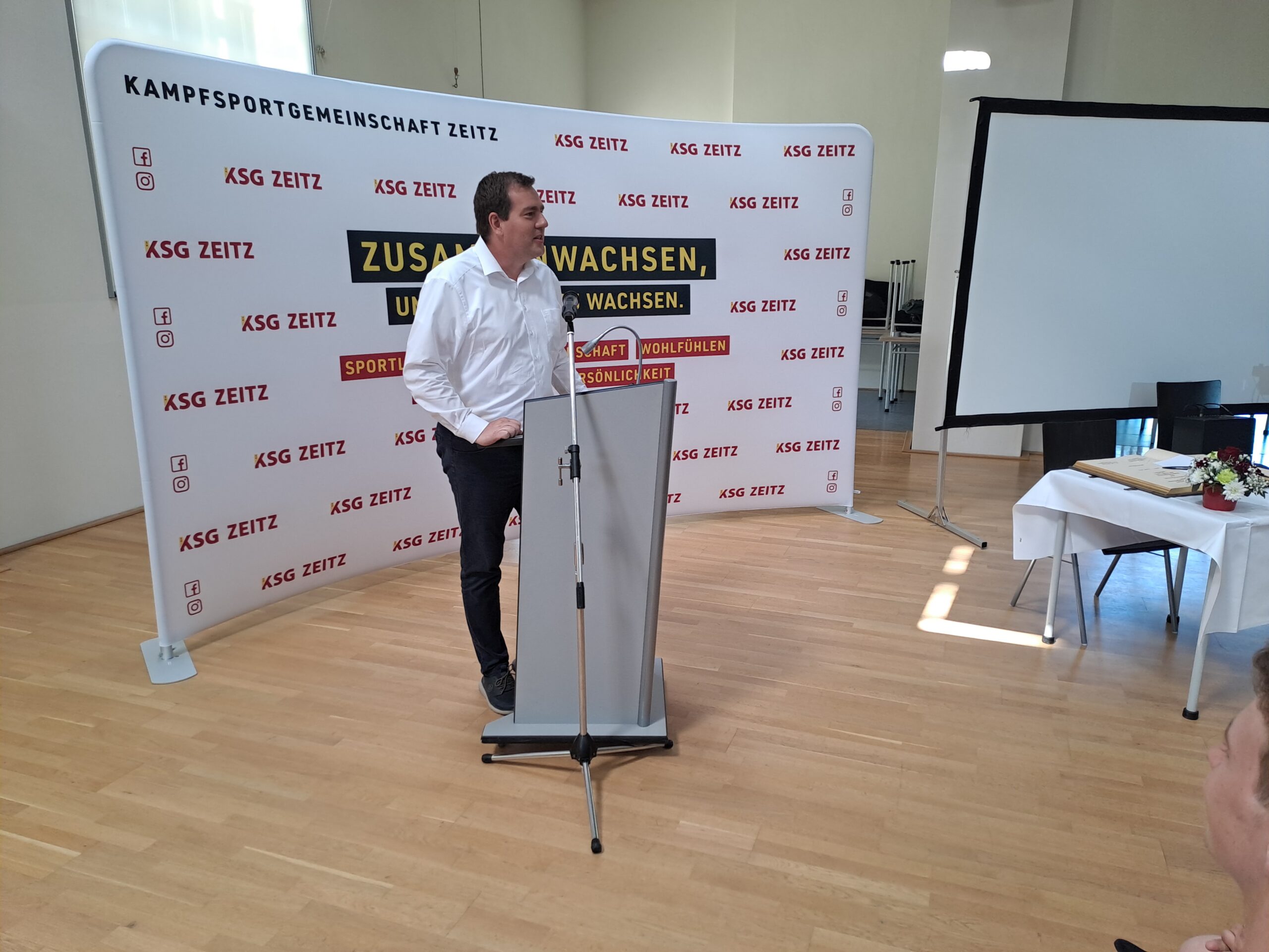 Silvio hat sich für die Ehrung sein „zweites Wohnzimmer“ ausgesucht, sodass sie am Samstag in den Klinkerhallen stattfand. Neben der Zeitzer Bürgermeisterin, Zeitzer Stadträten, der stellvertretenden Landrätin, den Vizepräsidenten des Landessportbundes waren auch viele Vereinsmitglieder anwesend.