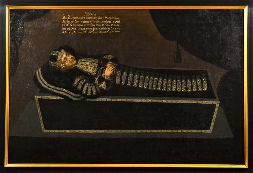 Das kultur- und kunsthistorisch bedeutsame Totenbildnis zeigt den ersten Herzog der Sekundogenitur Sachsen-Zeitz und Bauherren des Schlosses Moritzburg authentisch und nahezu in Lebensgröße – Herzog Moritz von Sachsen-Zeitz (1619-1681). Selten werden solche Zeugnisse barocker Bestattungskultur in Museen ausgestellt, im Zeitzer Schloss ist ihnen ein ganzer Raum in der Dauerausstellung „Zeit der Herzöge“ gewidmet. 15 Totenbildnisse werden darin präsentiert – die größte ausgestellte Sammlung von Totenbildnissen Europas.