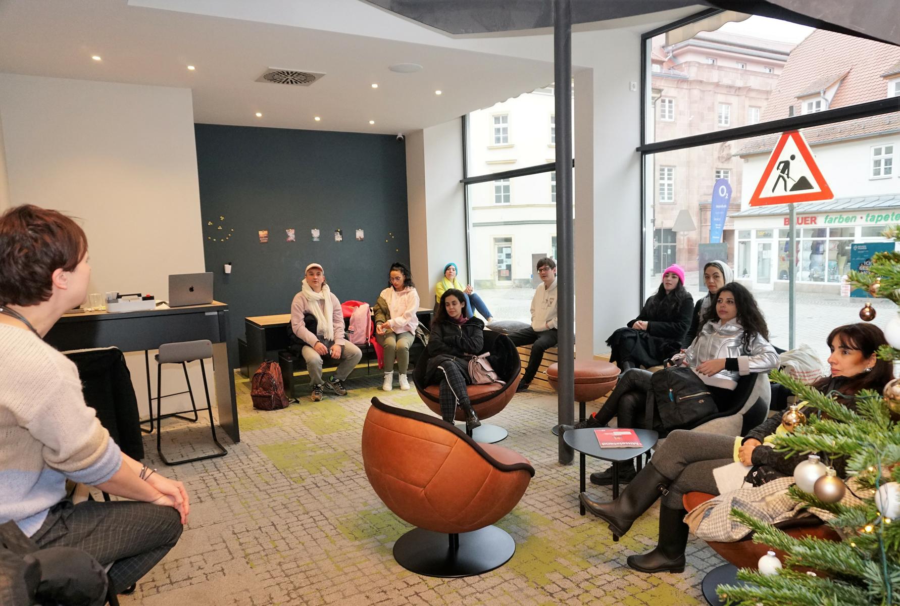 Das war auch schon an den zuvor besuchten Orten so. Gerade kamen die jungen Frauen aus der Besichtigung des Coworkingspace WOW am Roßmarkt, wo ihnen die Betreiberin Christin Baumert das Konzept erläuterte. Coworkingspaces würde es auch in Ägypten geben, erzählen die Gäste. In Kairo und Alexandria, den Millionenstädten, in so kleinen Städten eher nicht.
