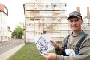 Und, ein Narr wer glaubt man müsse nicht auch in dieser Stadt Geschichte bewahren, Schönheit mit Nutzen und Altes mit Neuem verbinden. Es liest sich im Bild wie eine Botschaft an uns, wir mögen uns neu erfinden. „Darauf können Sie bei mir mit einem Zeitzer Whisky anstoßen,“ scheint denn auch einladend Daniel Rost zu rufen.