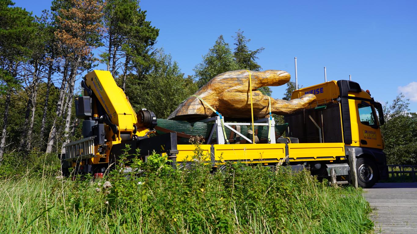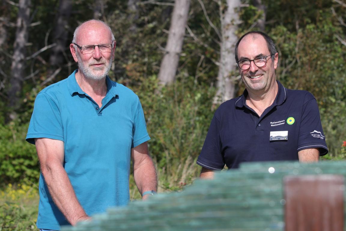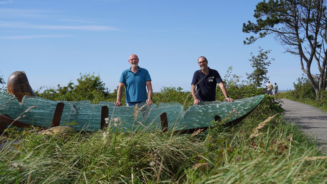 „Der weite Weg hat sich gelohnt“, findet Lothar Stahl, „es ist ein wunderbarer Standort“. Der Geschäftsführer des Landschaftspflegeverbandes Mittleres Elstertal e.V. hat den Transport und Aufbau begleitet. Bernhard Rauhut vom Wattenmeer-Besucherzentrum Cuxhaven ist die Freude auch anzusehen.
