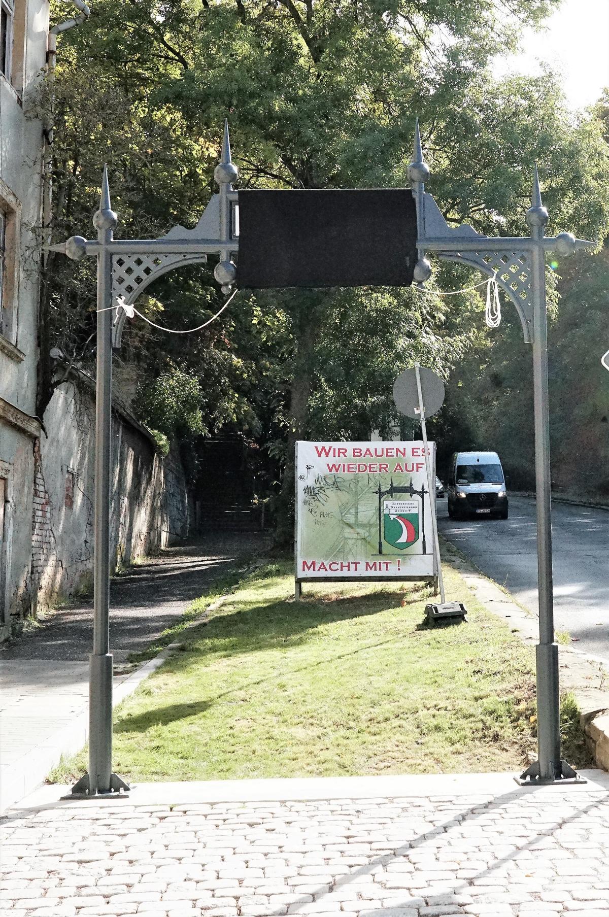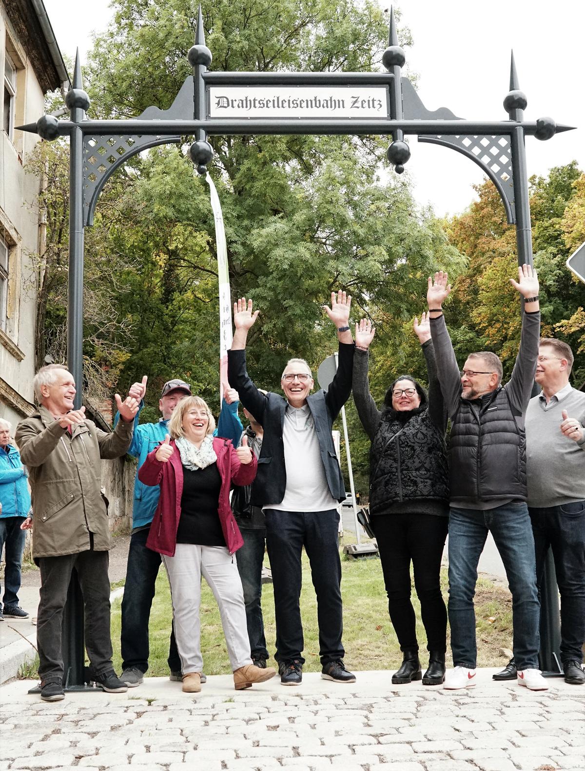 „Ein bisschen habe ich sogar Pippi in den Augen,“ sagt Matthias Enzmann. Das war am Freitag (7.10.). Gerade haben er, Ralph W. Dietrich, ihre Drahtseilbahner und die Metallbaufirma Burggraf die Talstation aufgebaut. Tags darauf, pünktlich zum Zuckerfest, wird sie enthüllt. Und viele ZeitzerInnen werden dabei sein. „Wir bauen sie wieder auf“ – lange wirbt der Verein Historische Drahtseilbahn Zeitz e.V. mit großem Banner für diesen Moment. Und sie hielten Wort.
