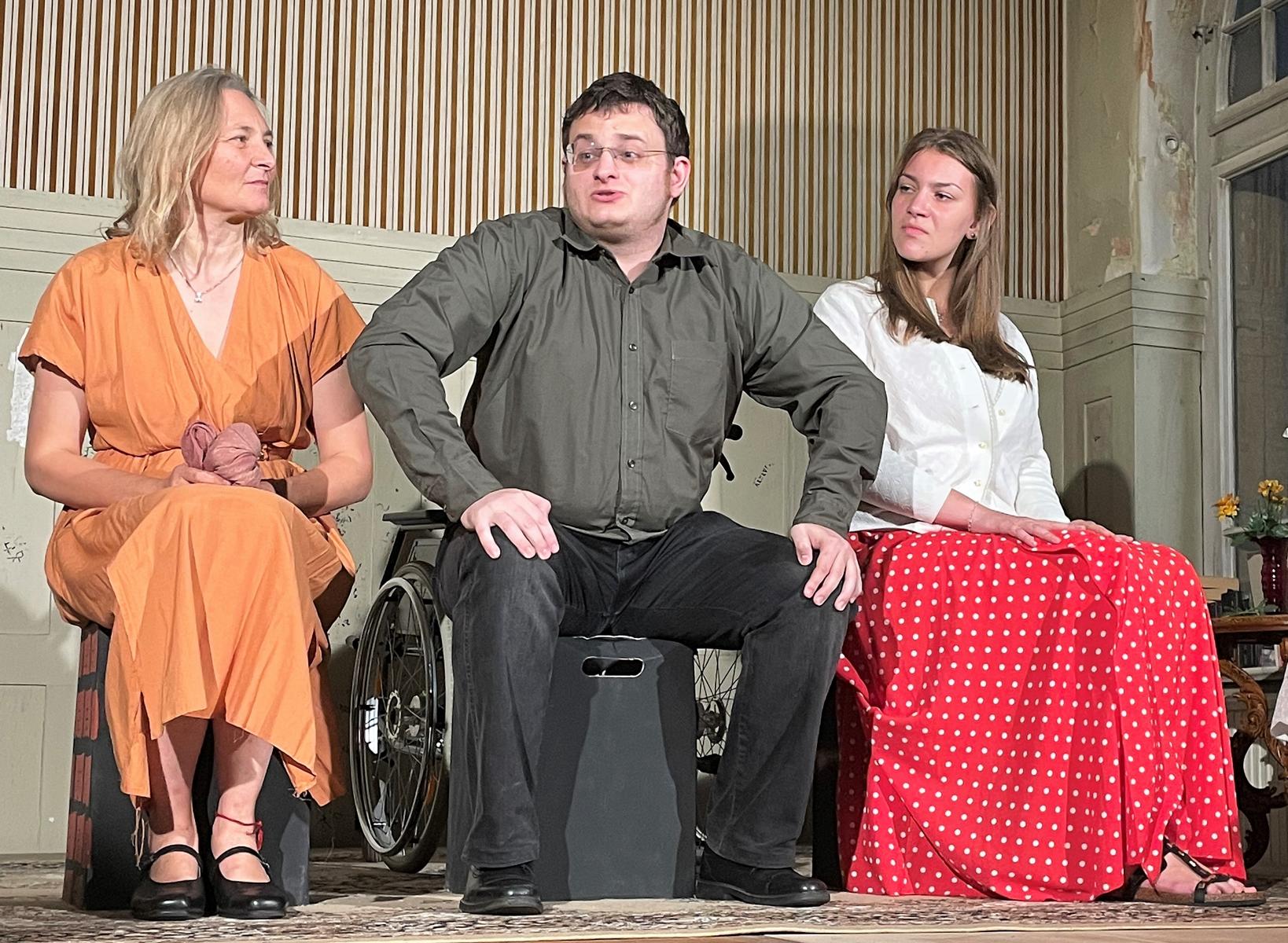 Rotraud Dennecke hatte für drei LaiendarstellerInnen ihrer Theatergruppen ein amüsantes wie nachdenklich machendes kurzes Theaterstück inszeniert. Das übersetzte Aussagen ihres Gegenüber im Seniorenheim in ein lebendiges und wohlpointiertes Szenisches Spiel. In zehn Minuten sah man in Berührendem wie Humorigem ein Leben an sich vorüber ziehen.