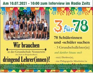 Nun wurde bekannt, im neuen Schuljahr steht vor den 78 SchülerInnen lediglich eine Lehrerin. Schwanger, Ruhestand, Kündigung sind die Gründe für den Mangel. Und bildungspolitische Fehlentwicklungen, die wir hier aber nicht debattieren. Hier wollen wir für die Schule werben.