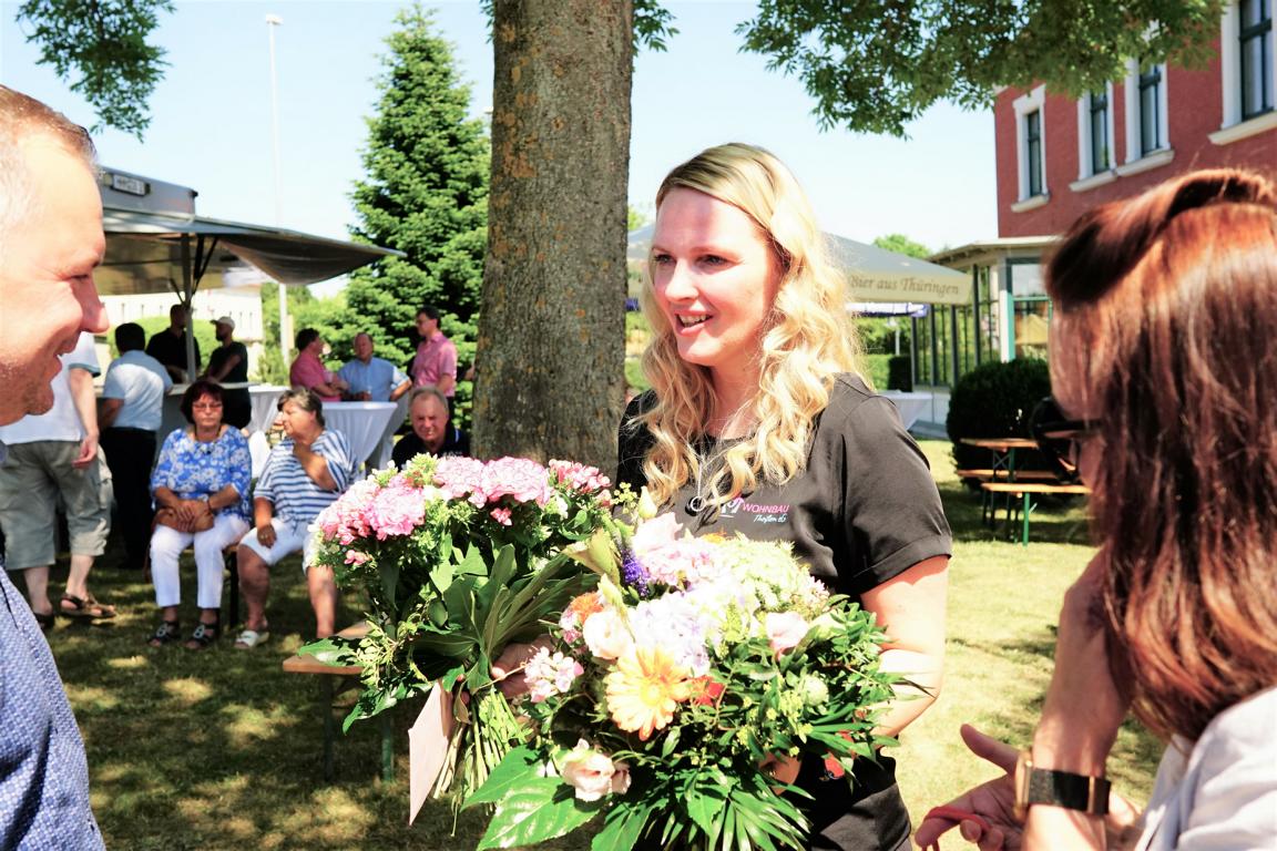 „Traditionen bewahren, den genossenschaftlichen Gedanken pflegen und modernen Service rund um das Wohnen bieten – das steht seit Jahrzehnten auf unserer Agenda.“ So lesen wir auf der Webseite der Wohnbau Theißen eG.. So halten die Genossenschafter das auch bis heute. Dafür gab es in Theißen jede Menge Blumen, Geschenke, ein buntes Programm, Spiel für die Kleinsten und jede Menge für das leibliche Wohl.
