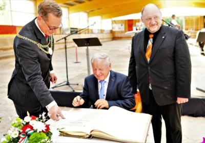 Kein Zufall ist der Ort der Ehrung – die neue Reitanlage des Reit- und Fahrvereins Zeitz-Bergisdorf e.V., dessen Vorsitzender Ebenhoch ist. Seit 54 Jahren. Dieser Ort, einst eine Brache, ist heute die modernste Reitanlage der Region. Dem Willen und der Energie des 76-Jährigen sei Dank. Denn 2013 schluckt das Hochwasser der Elster eines seiner Lebenswerke, den damaligen Reiterhof nahe der Weißen Elster. Zuvor hatte er schon der Wende der Treuhand ein Gelände in Bergisdorf buchstäblich aus dem Kreuz geleiert, um es zum Reitgelände umzugestalten. Ihm, der immer auf Nachhaltigkeit und Wirtschaftlichkeit achtete konnte auch das nicht genügen für seinen Verein und seine Leidenschaft, dem Reitsport.