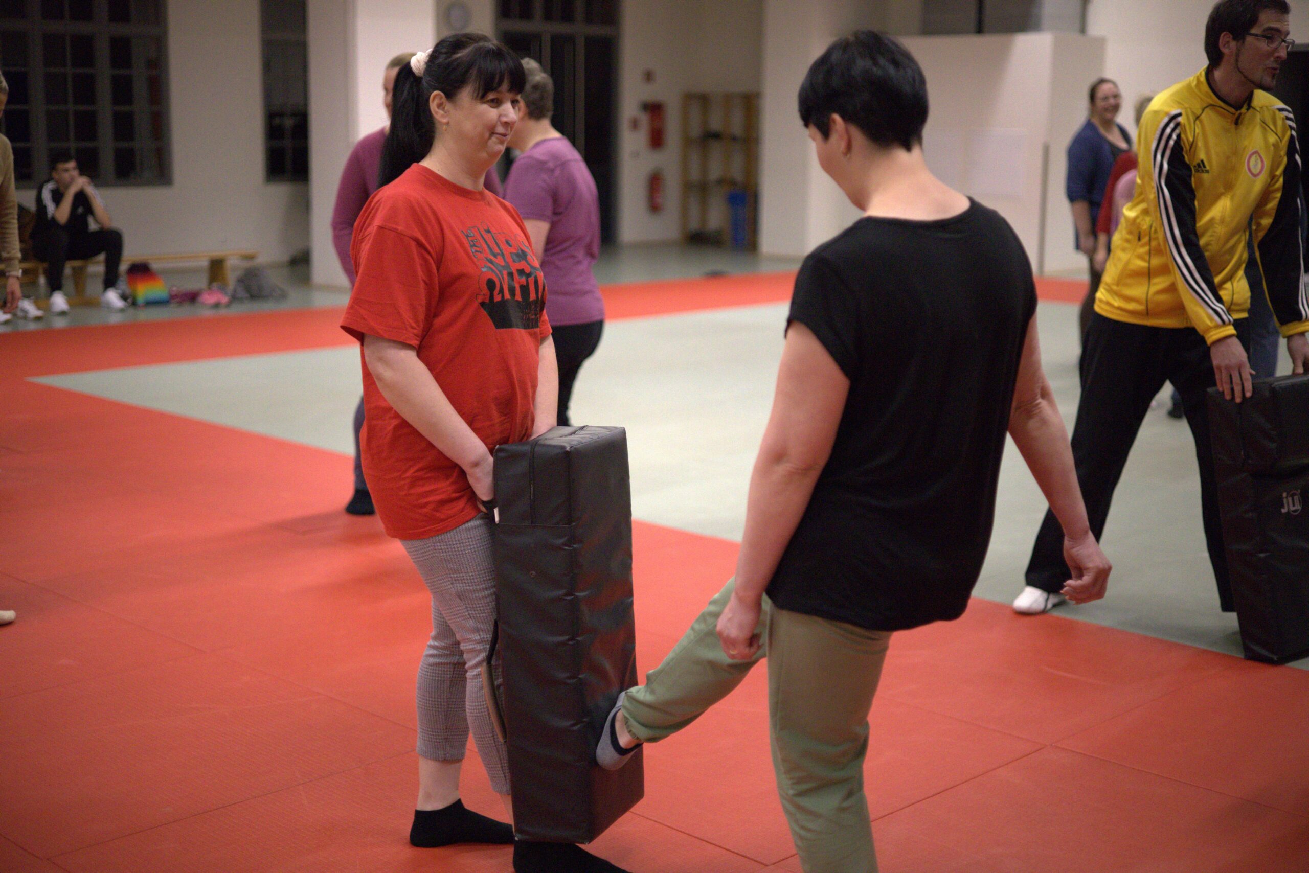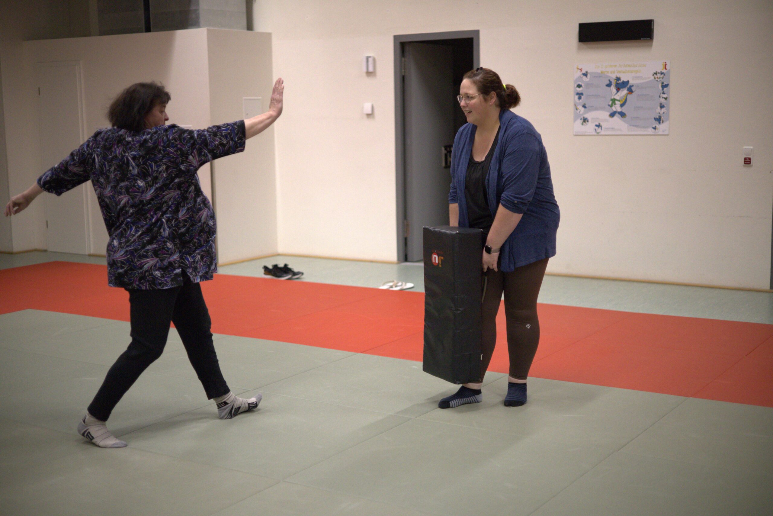 Im Kurs übten die Frauen Selbstbehauptung, das Einhalten eines sicheren Abstandes und verschiedene effektive Techniken zur Selbstverteidigung bei Übergriffen.