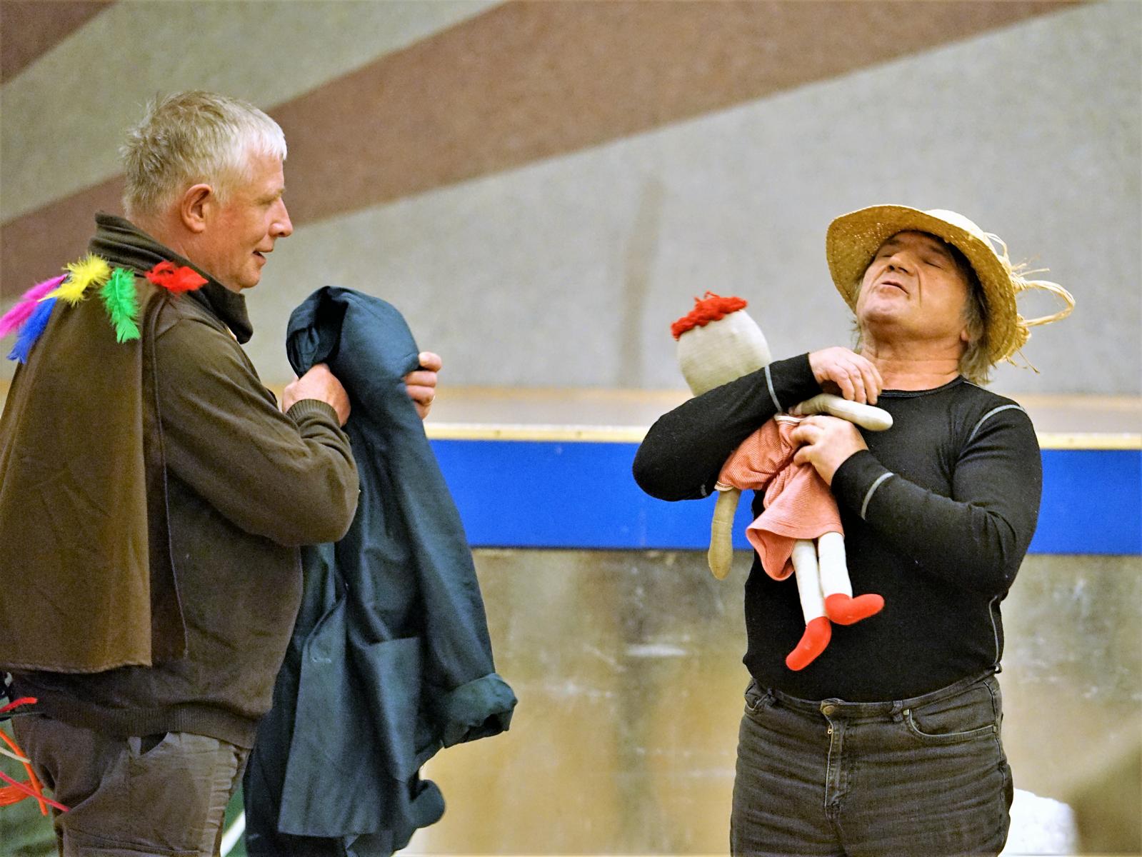 Mittlerweile haben diese Begegnungen schon Tradition. Sie sind ein Teil der Probearbeit beider Theatergruppen und auch soetwas wie die Vorbereitung auf „Inklusion im Rampenlicht“. Das ist ein Format, welches im Rahmen der Initiative „Einfach zusammen aktiv sein“ im Burgenlandkreis Kulturschaffende mit und ohne Handicat zusammenführt, um ihre Arbeit öffentlich zu präsentieren. Bis dahin aber werden sie die Stücke bereits öffentlich aufgeführt haben, aus denen sie heute einiges zeigten.