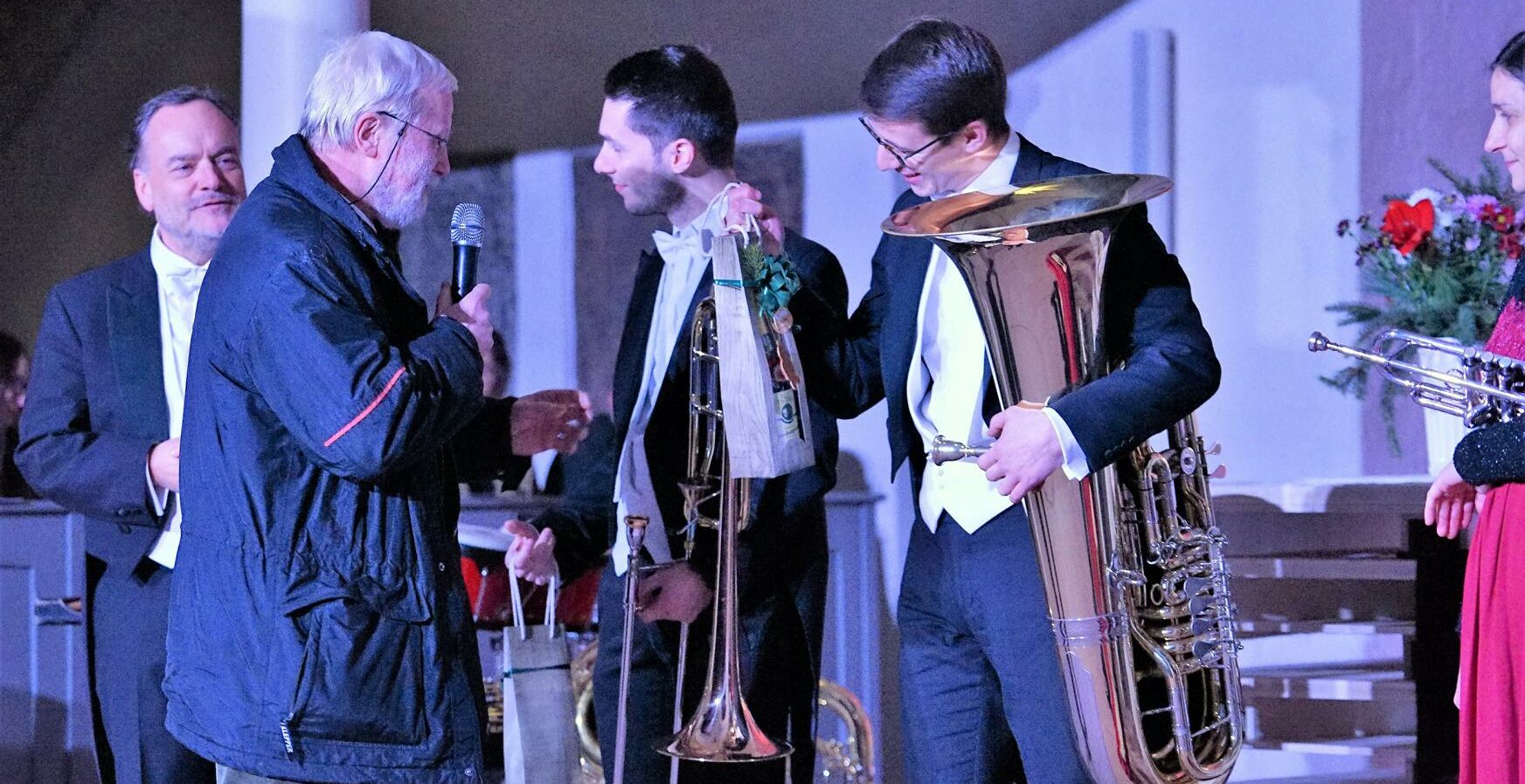 Das festliche Adventskonzert war bereits die 25. Begegnung von HARMONIC BRASS mit dem Zeitzer Publikum. 1998 spielten sie hier ihr erstes Konzert und ver zücken seitdem jedes Jahr das Publikum in der Elsterstadt. Wir schließen uns dem Conférencier Andreas Binder an und sagen einmal DANKE. Denn insbesondere Ute und Helfried Adam (Bild unten, 2. v.li.) nebst der evangelischen Kirchengemeinde St. Michael ist es zu verdanken, dass dieses außergwöhnliche Quintett von Welt die kleine Kulturstadt Zeitz jedas Jahr aufs Neue bespielt.