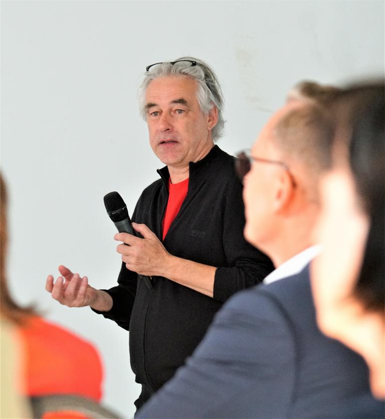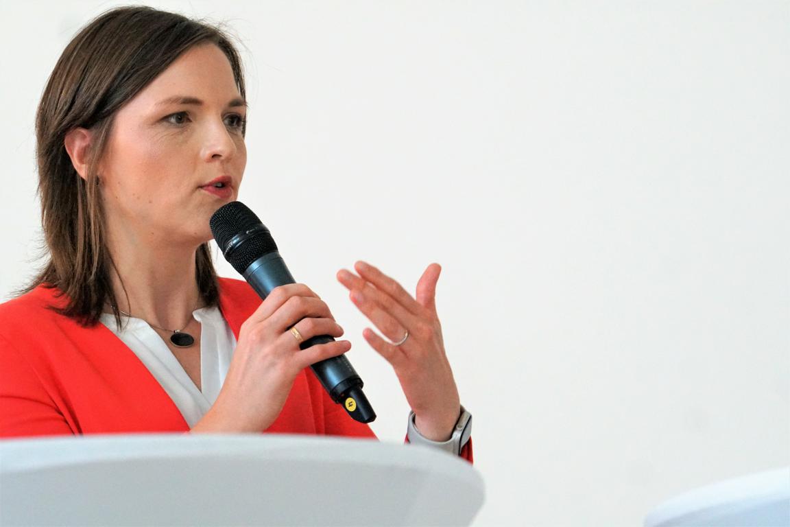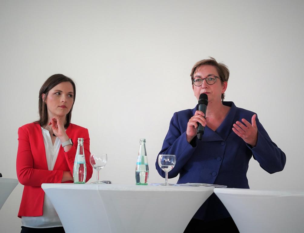 Thematisch waren die Vorträge eine Punktlandung, denn gerade diese Schwerpunkte sind es, die Geywitz und ihr Ministerium umtreiben: Erhalt baukulturellen Erbes durch Nutzung, Neubau und energetische Sanierung, Anpassung der Städte an den Klimawandel und soziale Quartiersentwicklung. Offensichtlich auch Themen, die beim Publikum im darauffolgenden Dialog von Interesse sind.
