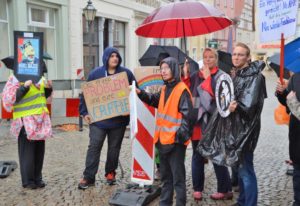 So gab es an diesem verregneten Sonntag auch den Lichtblick. Menschen, die gegen plumpe Propaganda aufbegehren. Menschen, die sich auch vom Ruf der vorbeigehenden Gruppe ZeitzerInnen „Haut doch ab nach Afghanistan“ nicht provozieren lassen.