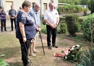 „Es darf kein Vergessen geben,“ sagte Johannes Krause am Denkmal des KZ-Außenlagers „Wille“ in Rehmsdorf heute am Weltfriedenstag. Der DGB-Kreisverband Burgenlandkreis legte, verbunden mit kurzen nachdenklich mahnenden Worten und einem Gedenken, einen Kranz nieder.
