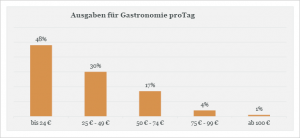 Kultur erleben macht auch Hunger und Durst. Keine neue Erkenntnis. Was aber geben Besucher am Tag dafür aus? Ein Drittel lässt sich das zwischen 25 und 49 Euro kosten, immerhin gibt fast die Hälfte für Verpflegung bis 25 Euro aus.