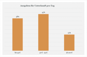 Gut zu wissen, dass zwei Drittel der Befragten für eine Unterkunft zwischen 50 und 100 Euro auszugeben bereit sind. Pro Tag übrigens. Kürzere Öffnungszeiten sind unseres Erachtens nicht gerade förderlich, die ohnehin kurze Aufenthaltsdauer von Gästen der Stadt zu verlängern. Mehr als 50 Prozent der Befragten nutzen als Unterkunft eine Pension (17%) oder ein Hotel (35%). Geld, das jedenfalls in der Region bleibt.