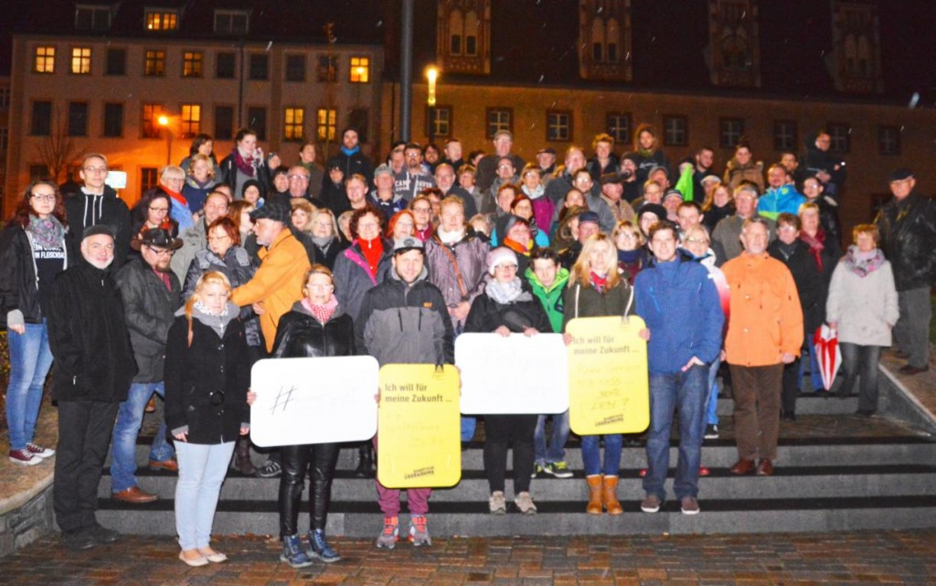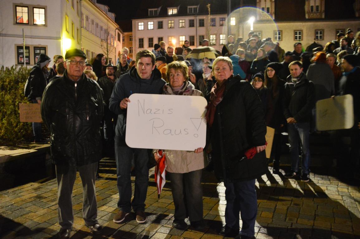Menschen, die Fremdenhass und Naziparolen in Zeitz nicht haben wollen schrieben Artikel aus dem Grundgesetz auf Plakate. Menschen, die den dumpfen Parolen eines angeblich besorgten Bürgers namens Steffen Thiel von der NPD keinen Raum geben wollen hatten sich zum friedlichen Protest versammelt. Junge Menschen, die sich verbal und mit ihrem Plakat visuell ein weltoffenes Zeitz wünschen und solchen wie Thiel und seinem Gefolge entschlossen entgegentreten.