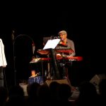 Bisweilen gibts Sphärisches aus den Keyboards von Reimar Henschke, wenn Meineckes Stimme samtig durch den Saal dunkelt. Überraschend plötzlich die Sounds des Allrounders Ingo York aus Gitarren Pauken und allerlei Mitgebrachtem.