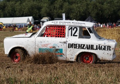 Die 26 PS-Boliden röhren über gut präparierte Stoppelpisten. Vom Überschlag über wildes Kurvenschneiden bis zum Überschlag ist alles dabei, wenn die getrimmten Trabis um Sieg und Platz kämpfen.
