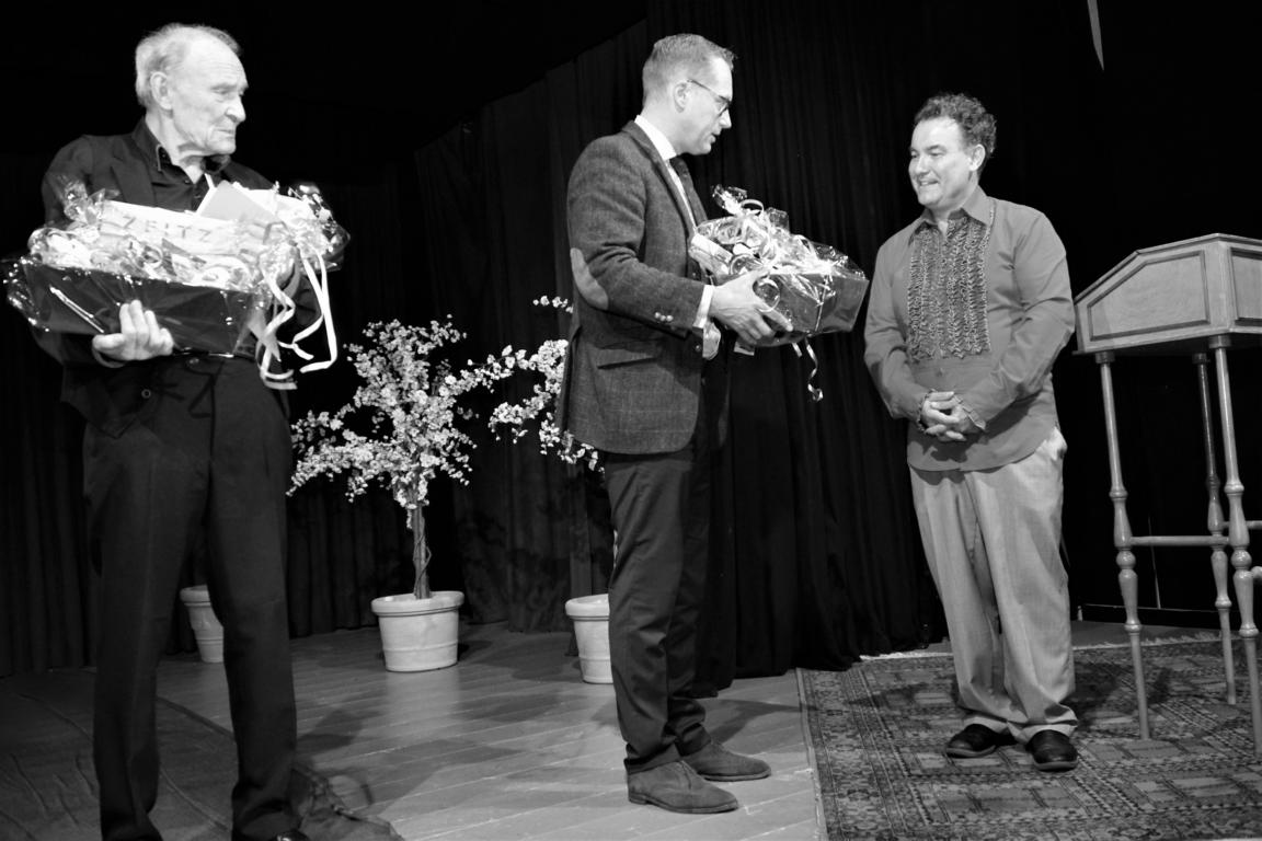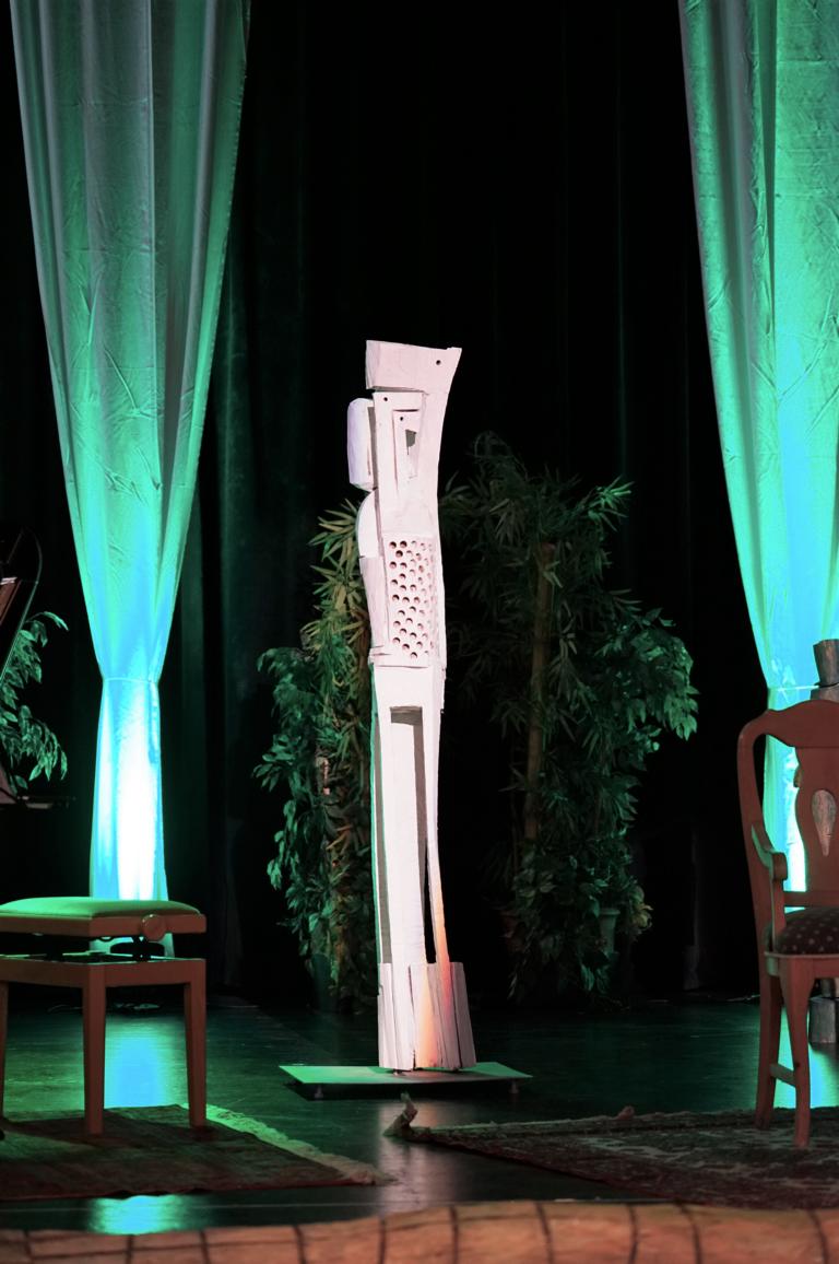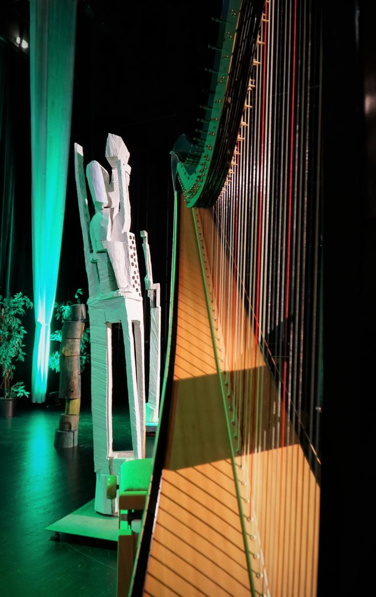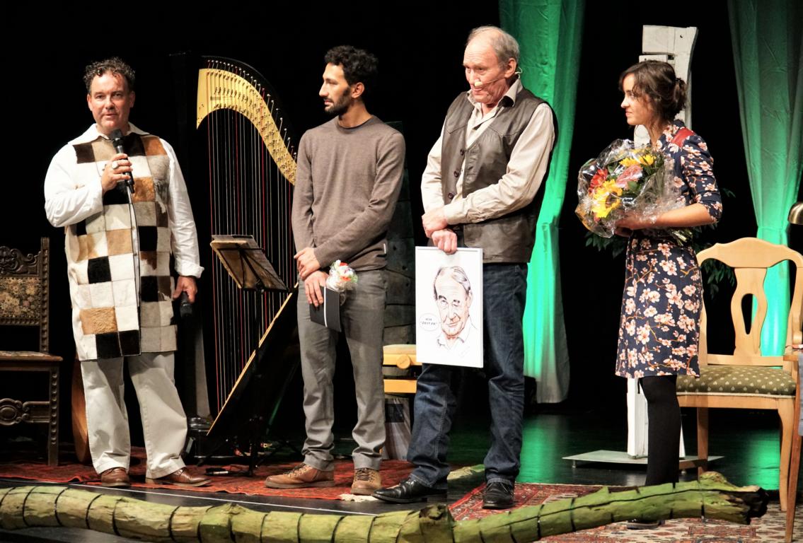 Die Mendl Festspiele gingen am Samstag mit „URWORTE“ zu Ende. Tags zuvor befielen Vipern, Kobras und eine Boa die Bühne im Zeitzer Capitol. Michael Mendl erzählte die Geschichte von ANACONDA des uruguayischen Autors Horacio Quiroga. Optisch setzten geschickt ausgeleuchtete Holzskulpturen aus dem Schloss Wallhausen „giftige“ Akzente auf der Bühne. Für reichlich akustischen Reiz sorgten Leonie Sowa’s wunderbaren Harfenklänge. Soubhi Shami brachte mit seinen orientalischen Trommeln und Percussions die Urwaldhölzer zum Klingen. Mendls mal voluminöse mal hauchende Stimme erzählte die bildreiche Sprache Quirogas mit viel der ihm eigenen Empathie. Für ihn hatte der Zeitzer Thomas Vetter am Ende noch eine Überraschung.