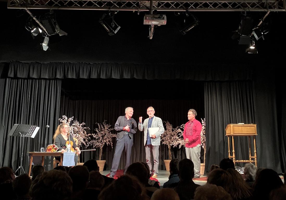 Ein wieder vollkommen anderes Format bot der letzte Tag der Mendl Festspiele mit „URWORTE“. Auf der Bühne stimmgewaltig Michael Mendl und virtuos an der Violine Nina Redding, beide gemeinsam oder nur er oder nur sie. Beide aber durchweg stark interpertierend. Es gab in den Texten reichlich Spannung. Goethe und Rilke – wer dachte „was soll das werden?“, der durfte am Ende von Auswahl und Interpretation durch Michael Mendl überzeugt gewesen sein. Denn es wurde ausgesprochen gut. Und das Spiel von Nina Redding – grandios.