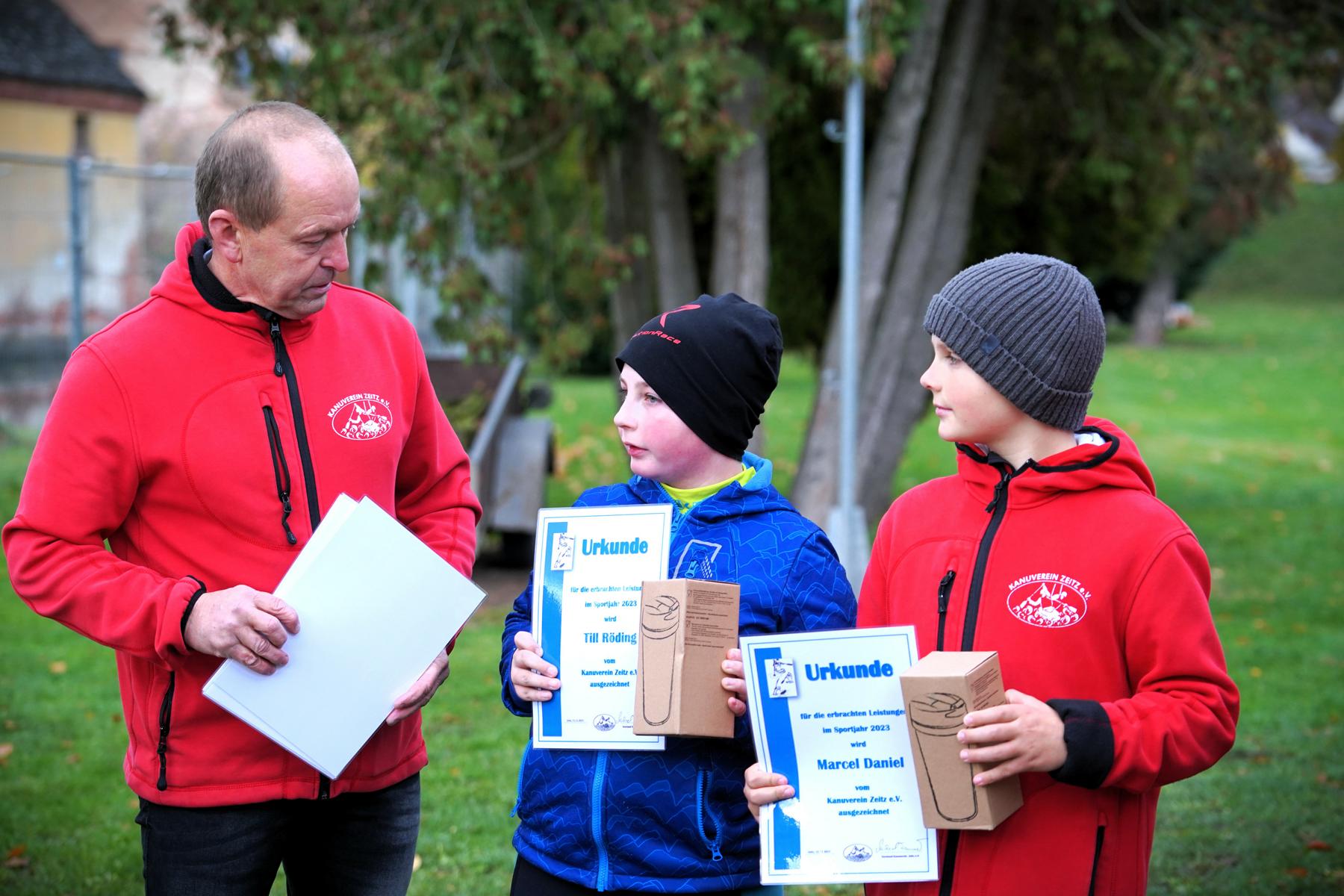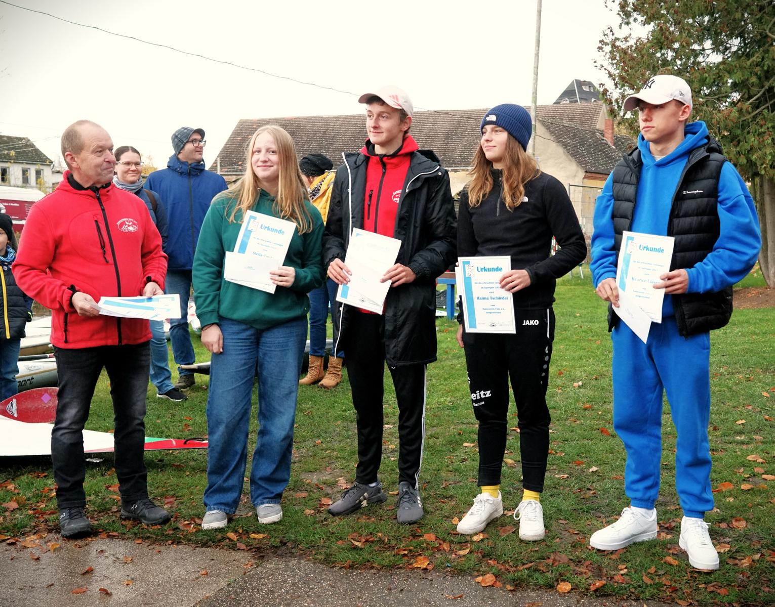 Währenddessen zuckt es bei den Größeren der Kanuten schon in den Schultern. Am liebsten würden sie gleich in die Boote springen für eine der letzten Touren der Saison. Vorab aber ist es guter Brauch hier am Mühlgraben, die Besten und die Fleißigsten zu ehren und sich auch bei den Helfern zu bedanken.