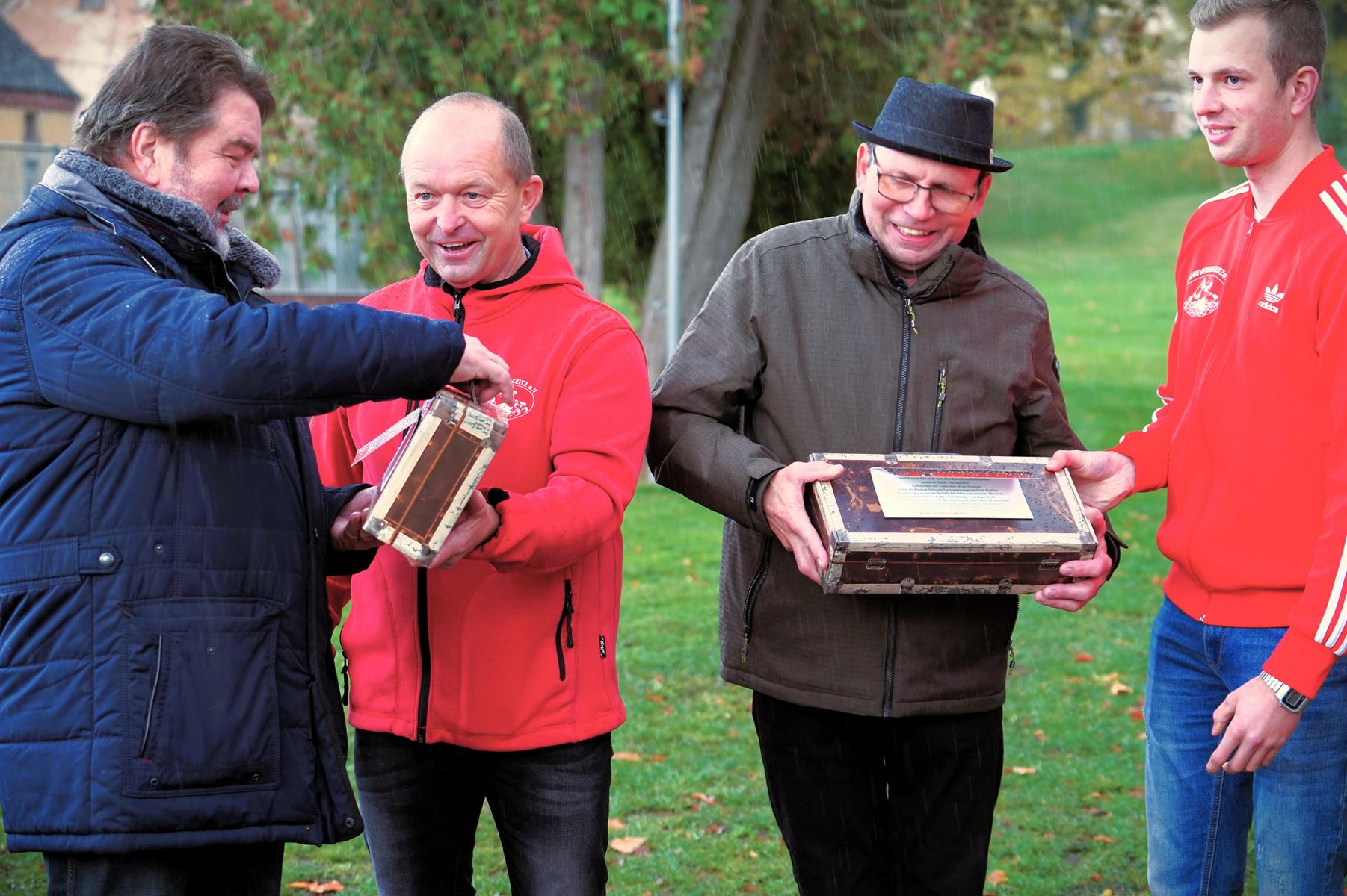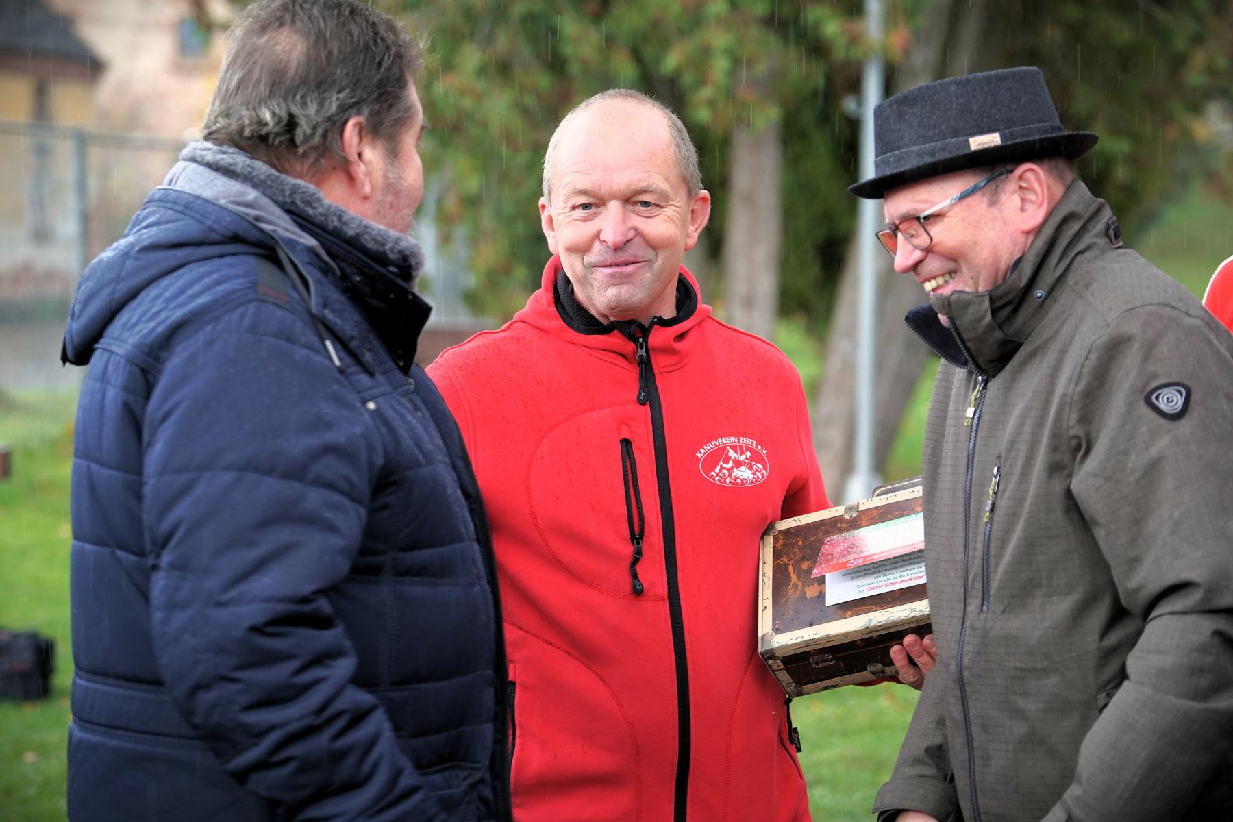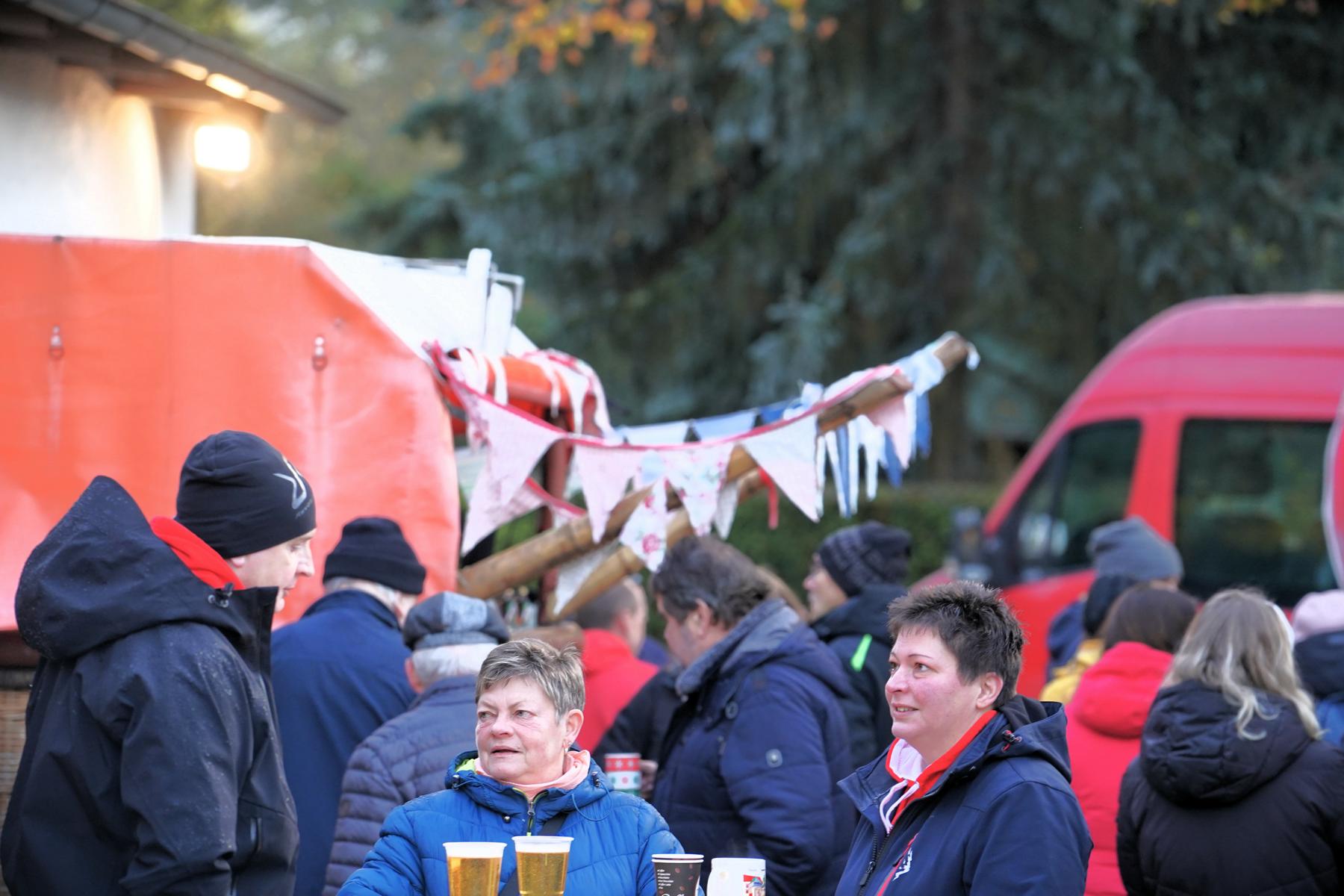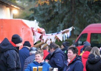 Michael Trummer betont zuvor, diese Ehrungen seien auch stellvertretend zu verstehen. Denn bei der erfreulich großen Anzahl sowohl an Sportlern als auch Helfern sei es dem Verein nicht möglich, jeden zu ehren. Dennoch wird in diesem Verein jeder und jedem Anerkennung zuteil, der sich sportlich oder helfend verdient macht. Also ist hier heute gut vorgesorgt und aufgetischt. Glühwein gibt es am Stand der Ballonfahrer, dort hinten raucht der Grill und Bier wird auch gezapft.